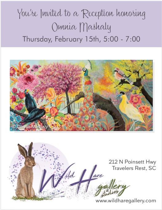 for a drop-in reception honoring the work of local artists Omnia Mashaly and Bob Bickel. Enjoy light refreshments as you meet the artists and learn about their processes and techniques at this informal gathering.