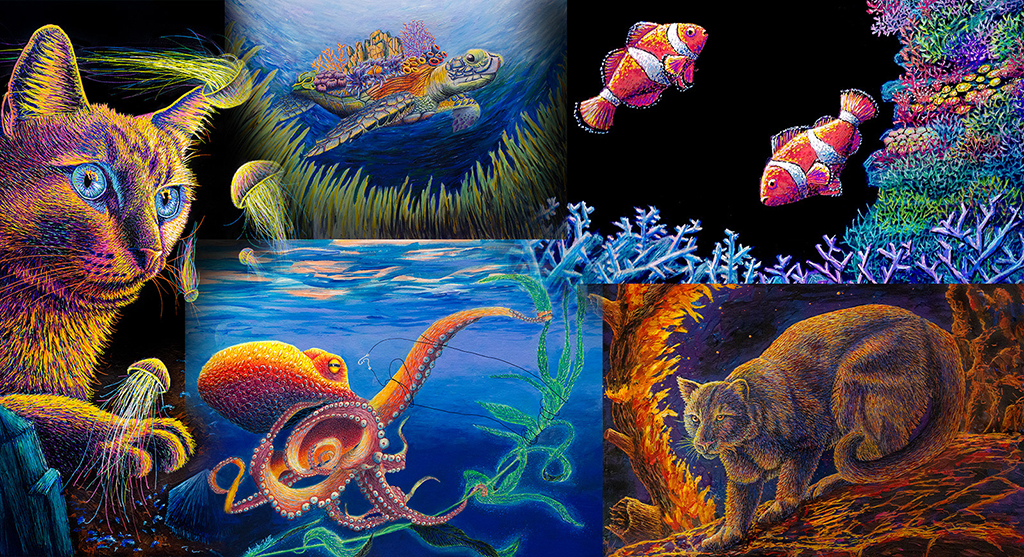 I enjoy using vibrant, rich colors that may not be natural to the subject, but give it an interesting and striking appearance. I like to highlight the main subject with light and shadow giving it form and depth.