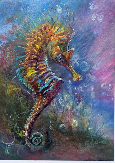 My subject matter includes but is not limited to: herons, humming birds, spoonbills, flamingos, jelly fish, lion fish, sea turtles, sea horses, elephants, lions, horses, stags, and deer.