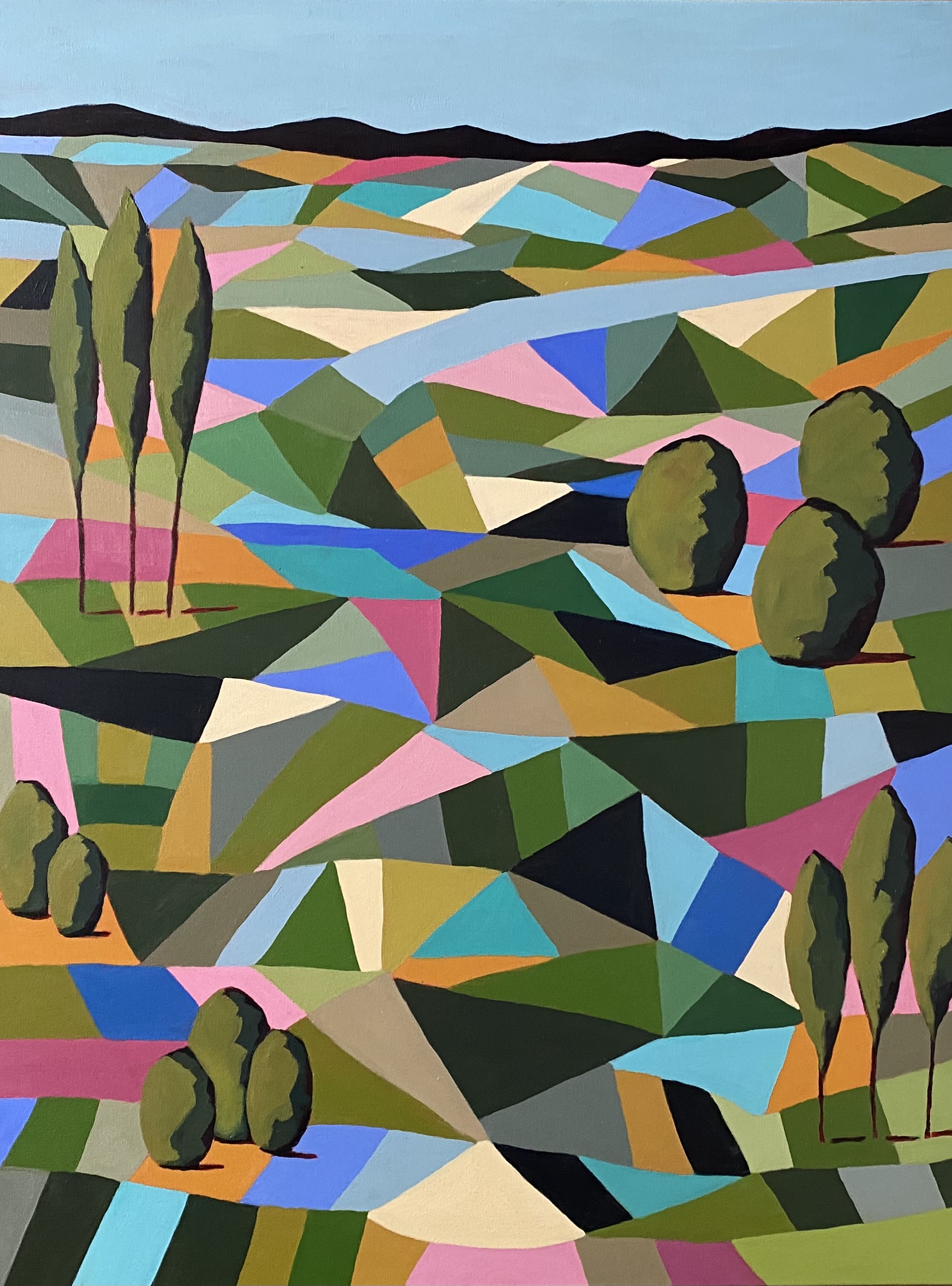 Life experiences inform and inspire my work. Using line, color, texture and shape I seek balance and movement within my composition. I sketch, arrange visual elements to develop exciting designs, and then recreate them in a larger painting. I predominantly paint with acrylics and mixed media while allowing myself to play and experiment with new techniques and processes.