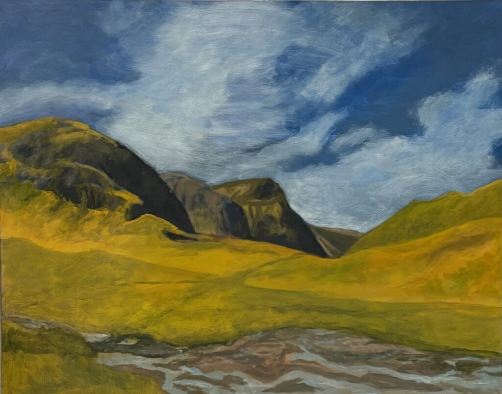 My work is painted in oil on canvas. I am inspired by landscapes and the world around me. I look for that special something - contrasts between dark and light, near and far. I explore shapes, colors that pop, or the sublime way a line moves.
