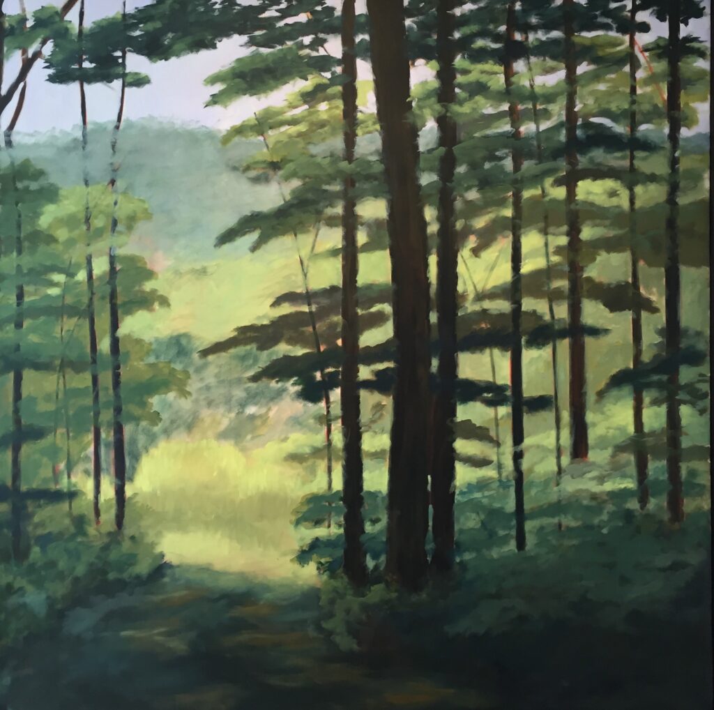a painting of a path in the woods