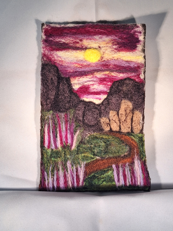 At stab therapy by moe. I make hand made needle felted landscapes, needle felted goddesses, wood goddesses and inspirational paper art.