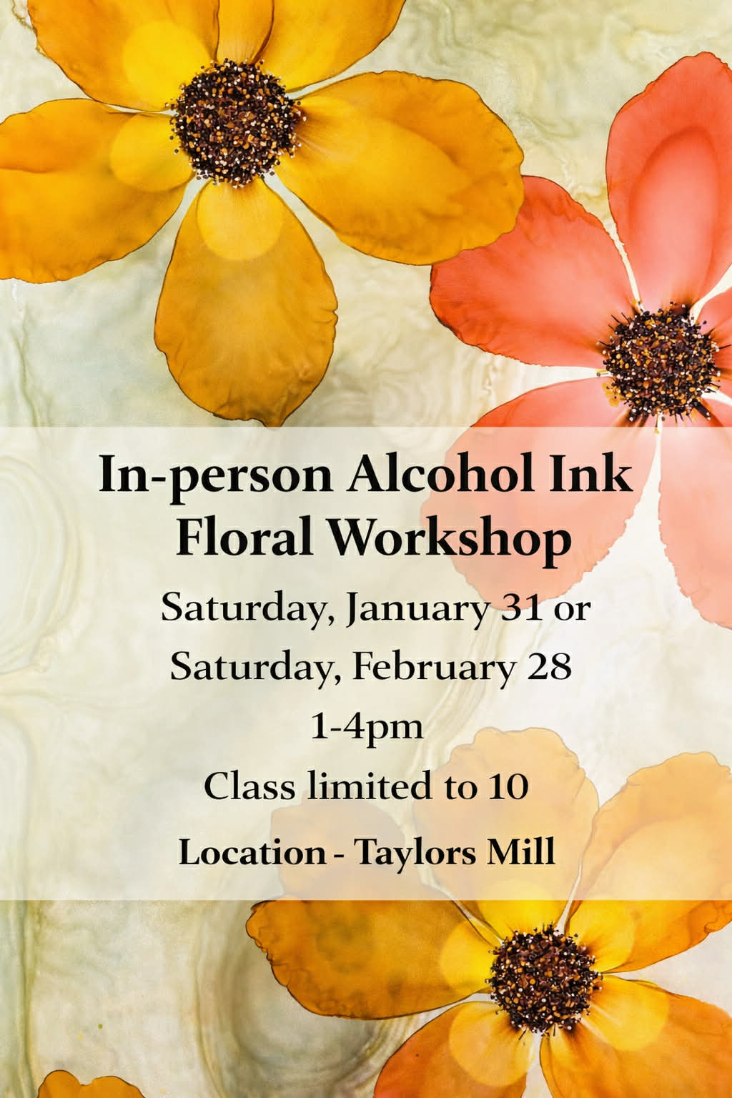 Join me for a 3-hour hands-on workshop where you’ll learn the basics of working with alcohol inks and create your own vibrant floral artwork. We’ll start with the foundational techniques, then move into a step-by-step guided floral painting. Perfect for beginners or anyone wanting to explore this flowing, expressive medium.