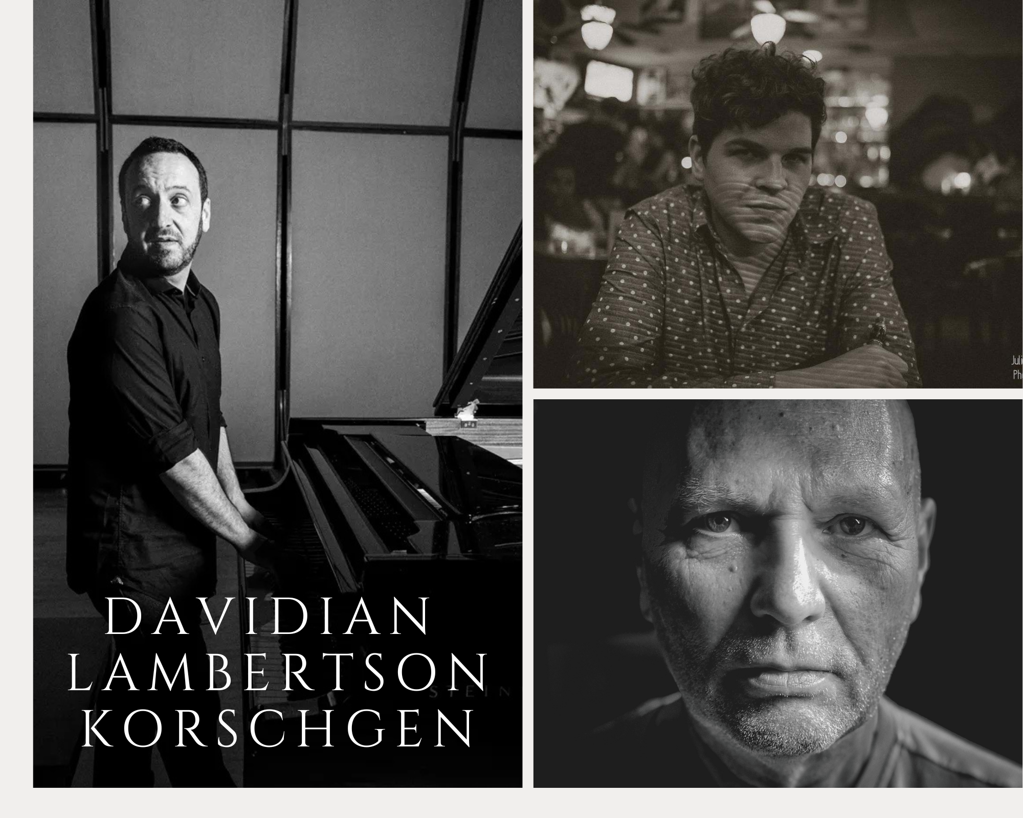 Classic jazz piano trio featuring pianist Joe Davidian, bassist Nathan Lambertson, and drummer Kevin Korschgen.