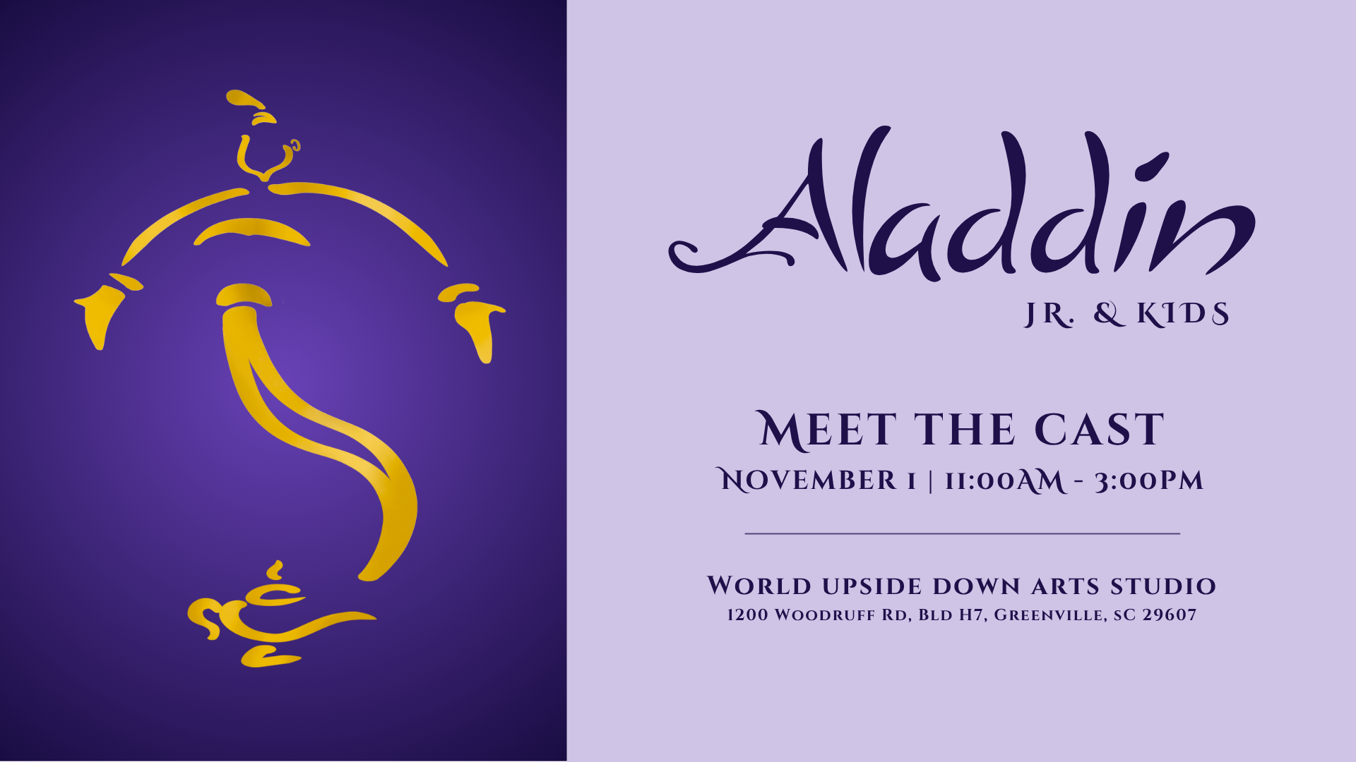 For one magical day only, your family is invited to Meet the Cast at World Upside Down!🎭 This interactive studio tour features real sets, costumes, cast members, and live mini-performances from the upcoming productions of Aladdin JR.