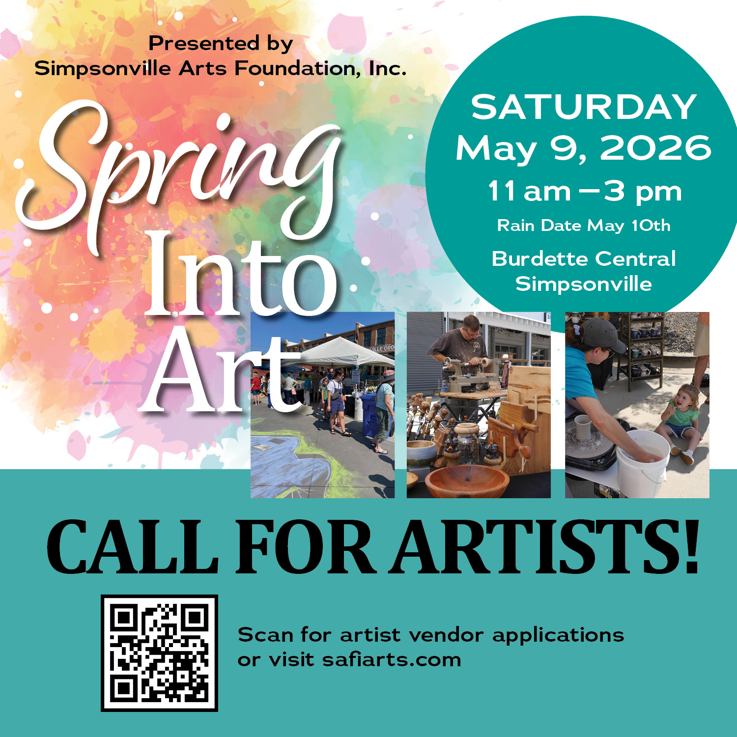 The Simpsonville Arts Foundation, Inc. (SAFI) invites you to be a part of our popular Spring Into Art Festival 2026 in downtown Simpsonville. This will be a family-friendly event with art from a juried selection of local and regional fine artists, music, and kid-friendly activities. Through this event, and others, SAFI is helping Simpsonville become...